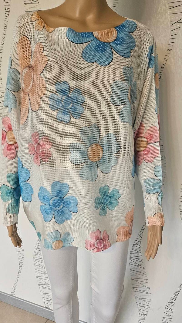 Pull fleurie en maille tricot léger